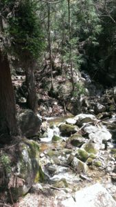 最初は川沿いをあるきますが、少しすると山側へ分岐します。