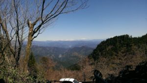 この宮下林道の方向に進みます。狭い山道を10分ほど登ると登山口駐車場(高賀の森公園駐車場)に着きます。