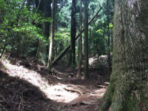 10時前には神社を抜けて登山道に入りました。登りだしの斜度はややキツいですが、徐々に緩やかになります。